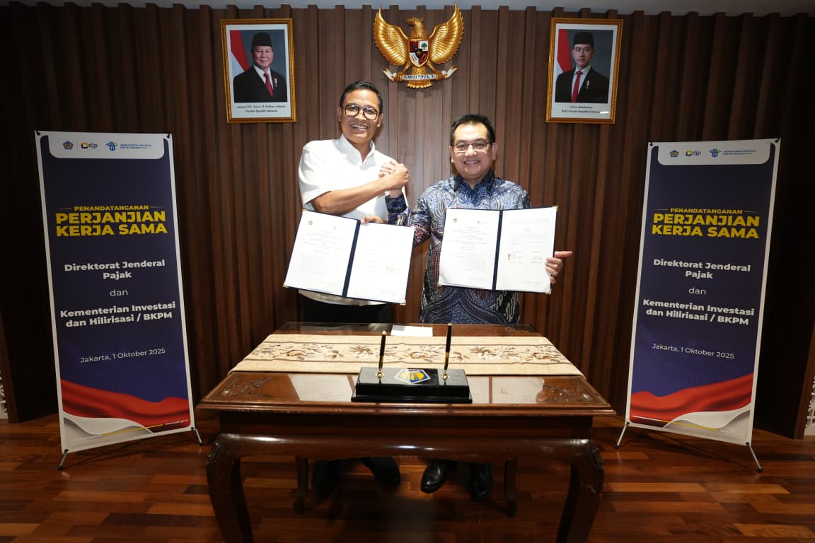 Penandatanganan kerja sama strategis ini dilakukan oleh Direktur Jenderal Pajak Bimo Wijayanto dan Sekretaris Kementerian Investasi dan Hilirisasi/Sekretaris Utama BKPM Heldy Satrya Putera di Gedung Chakti KPDJP, Jakarta, Rabu (1/10/2025).