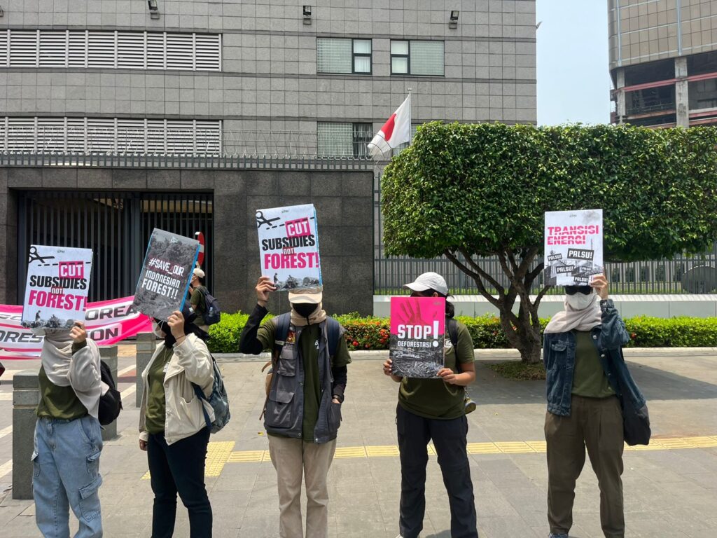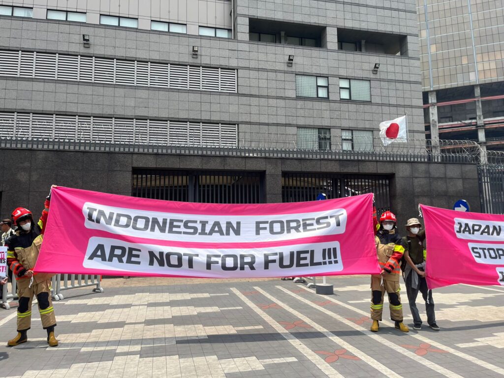 “Hutan Indonesia bukan bahan bakar kalian. Setop impor wood pellet dari Indonesia dan hentikan pengrusakan hutan kami,” tegas Tsabit dalam aksi di depan Kedutaan Jepang, Jakarta.