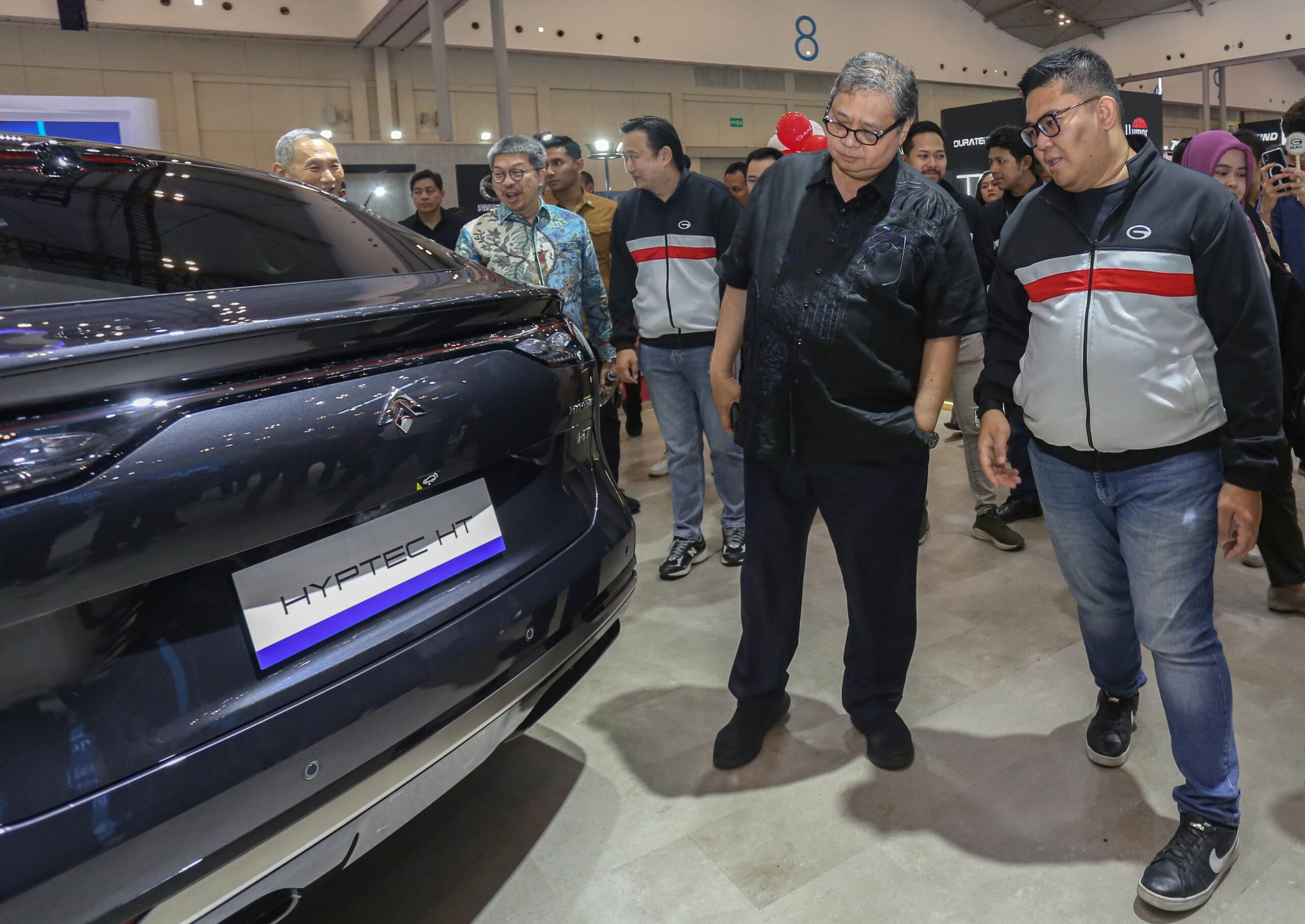 Airlangga hadir bersama pengusaha nasional Yusuf Hamka serta jajaran pengurus GAIKINDO, meninjau langsung berbagai inovasi kendaraan listrik yang dipamerkan GAC Indonesia. Dalam kesempatan tersebut, ia melihat lebih dekat teknologi terbaru yang ditanamkan pada lini kendaraan listrik GAC AION dan Hyptec.