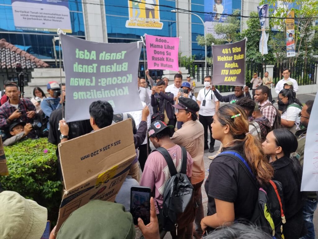 “Papua bukan tanah kosong. Setiap jengkal tanah dan hutan di Papua dimiliki masyarakat adat berdasarkan norma adat dan tradisi turun-temurun,” tegas Uli Arta Siagian, aktivis WALHI dan anggota Solidaritas Merauke, dalam aksi protes di depan kantor ATR/BPN, Jakarta.
