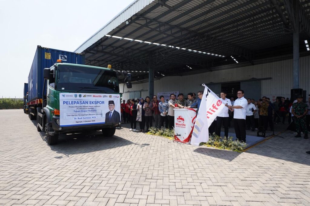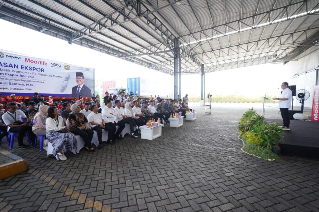 Nganjuk, SenayanTalks – Produk peralatan rumah tangga berbahan plastik buatan dalam negeri kembali menembus pasar global. Menteri Perdagangan Budi Santoso secara resmi melepas ekspor empat kontainer produk Moorlife senilai USD 411,73 ribu atau sekitar Rp6,7 miliar ke Filipina dan untuk pertama kalinya ke Rumania. Acara pelepasan ekspor ini berlangsung di Kabupaten Nganjuk, Jawa Timur, pada Kamis (3/10/2025).