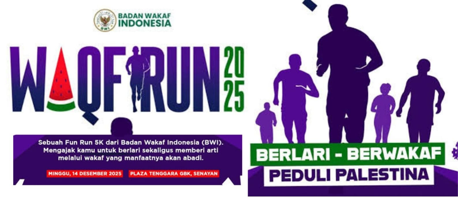 Waqf Run bertema “Berlari, Berwakaf, Peduli Palestina” ini digelar pada Minggu, 14 Desember 2025 pukul 06.00-09.00 di GBK Senayan Jakarta.