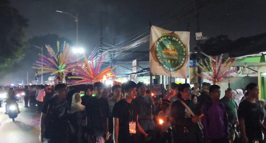 Antusiasme warga terlihat dari banyaknya peserta yang ikut ambil bagian, mulai dari anak-anak, remaja hingga orang dewasa. Mereka kompak mengenakan busana muslim dan muslimah, membawa obor yang menyala terang di sepanjang perjalanan.